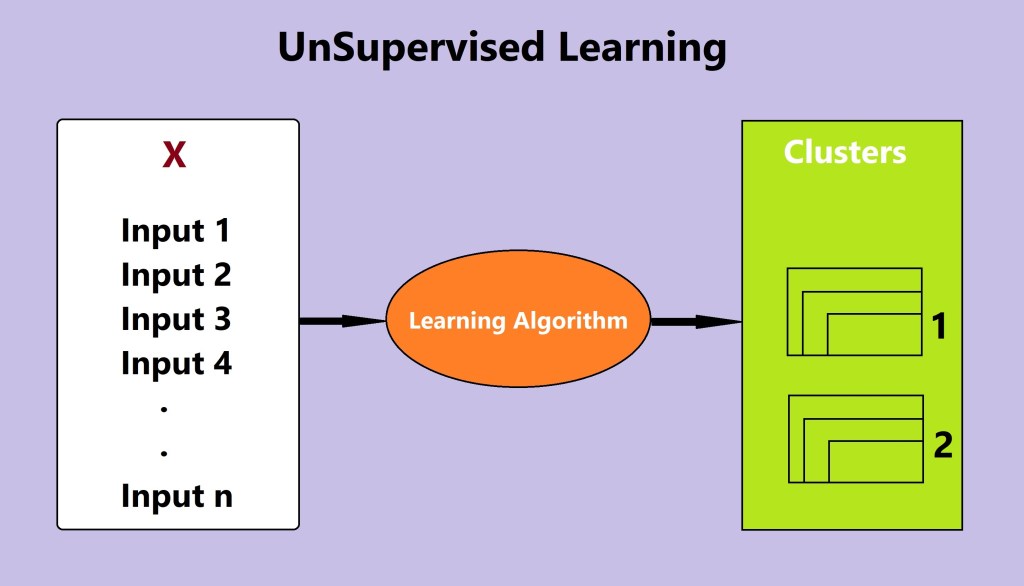 In other words, there are only inputs present and the learning algorithm groups them into clusters.