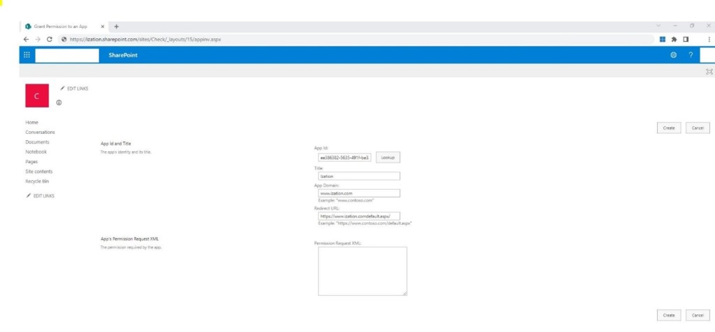 Step 3: Paste the below XML code in the Text box named Permission Request XML: and click Create.
