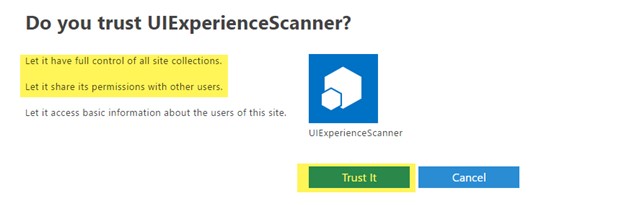 Step 4: You’ll be presented with a permission consent dialogue. Click Trust It to grant the permissions: