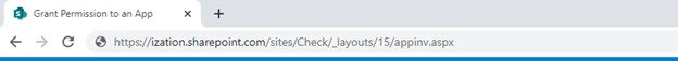 Step 1: Paste the URL ‘https://CompanyName.sharepoint.com/sites/SiteName/_layouts/15/appinv.aspx’ in your browser and click enter.