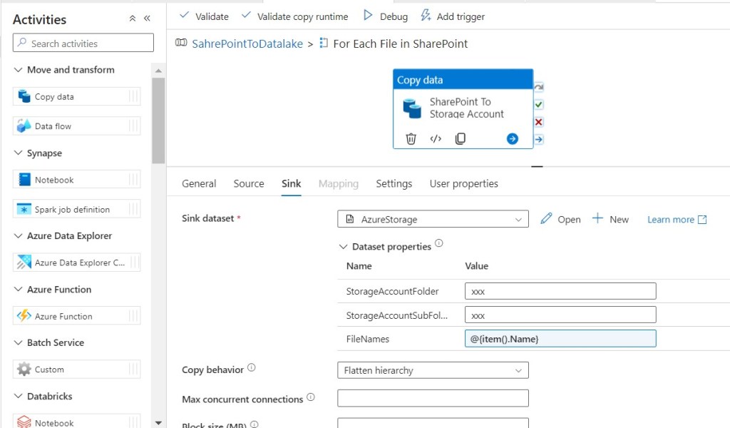 With Azure Data Factory, copying files from SharePoint to Data Lake becomes a breeze. By leveraging Azure Data Factory’s intuitive interface and robust features, you can easily set up connections to your SharePoint environment and Data Lake Storage Gen2. This allows you to define datasets representing the source (SharePoint) and the sink (Data Lake), specifying the exact locations from which data will be extracted and where it will be stored.