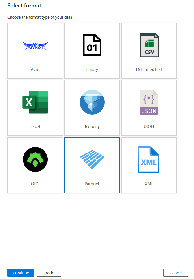 3. Search for Azure Data Lake Storage Gen2, select it, and click Continue.